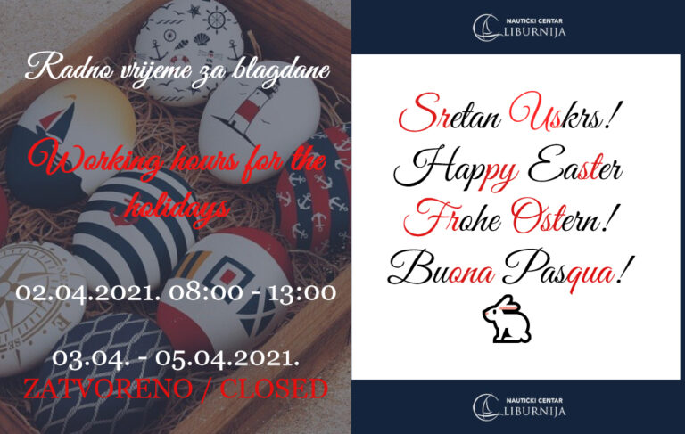 Poštovani kupci, Obavještavamo Vas o radnom vremenu za nadolazeće blagdane: 02.04.2021. petak od 08:00 – 13:00 sati 03.04.2021. subota, 04.04.2021. nedjelja te 05.04.2021. ponedjeljak: