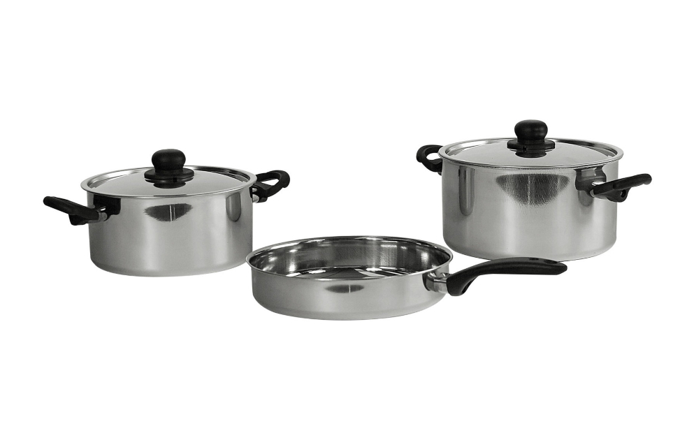Set lonaca s fiksnim ručkama izrađen od visokokvalitetnog nehrđajućeg čelika.