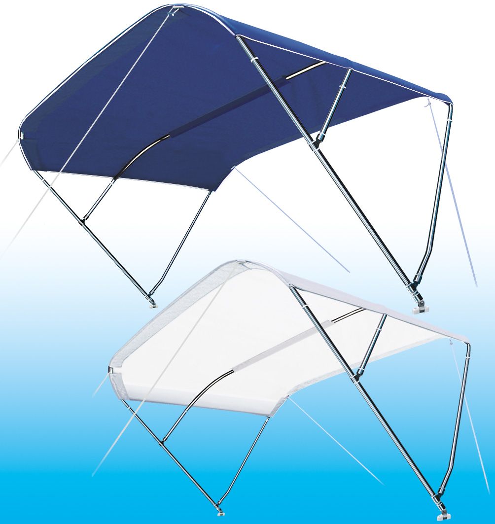 Model je izvedbe s tri luka, što u pravilu daje bolju stabilnost i pravilniji “raspon” tende u odnosu na kraće (2-lučne) izvedbe, uz zadržavanje praktičnosti pri sklapanju. U kompletu dolazi i zaštitna navlaka za spremanje (korisno za zaštitu tkanine kad je tenda sklopljena i tijekom transporta plovila).