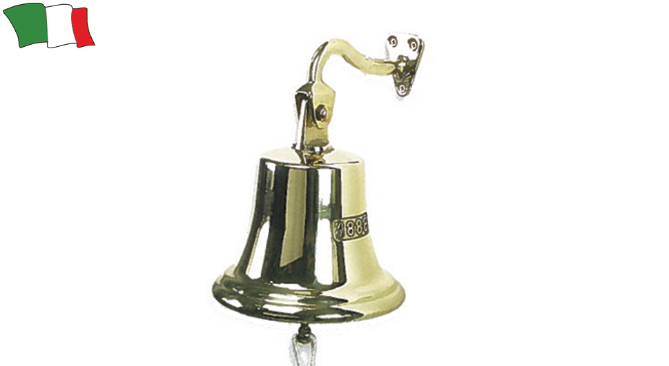 Brodsko zvono od čvrstog poliranog mesinga zajedno s nosačem za ljuljanje.