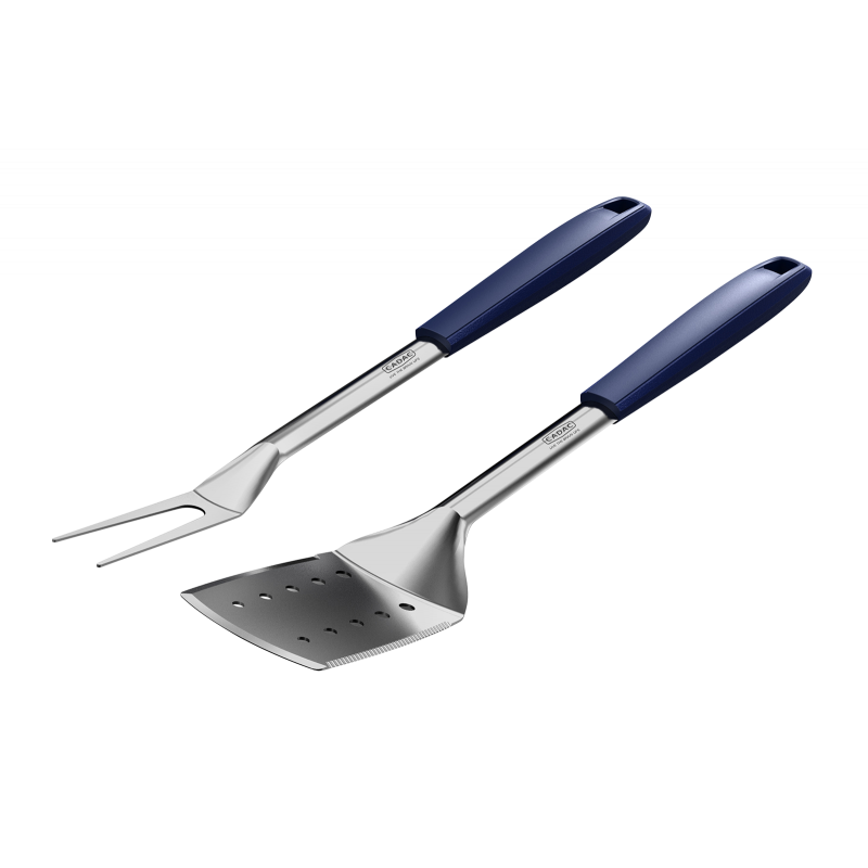 Elegantan set za roštilj od nehrđajućeg čelika i najlona otpornog na toplinu. Ove lopatice i vilice imaju ergonomski dizajn silikonske ručke.
