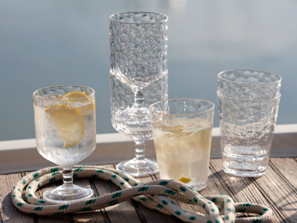 Praktičan set čaša za vodu. Izrađen od metilstirena, nesalomivog materijala prozirne boje s efektom stakla.