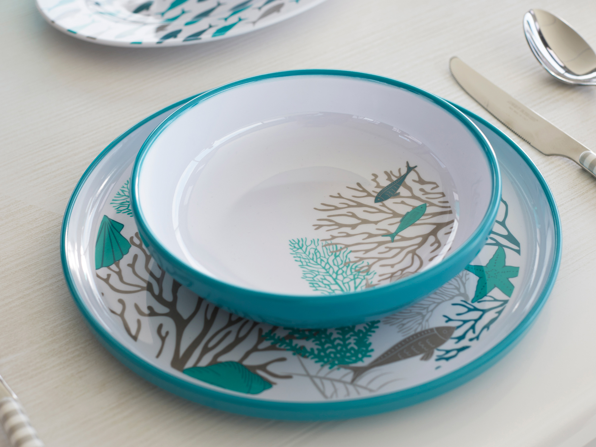 Duboki tanjur od melamine COASTAL, s protukliznom gumom na dnu, savršen za plovidbu.