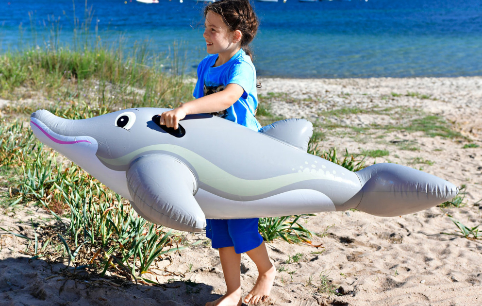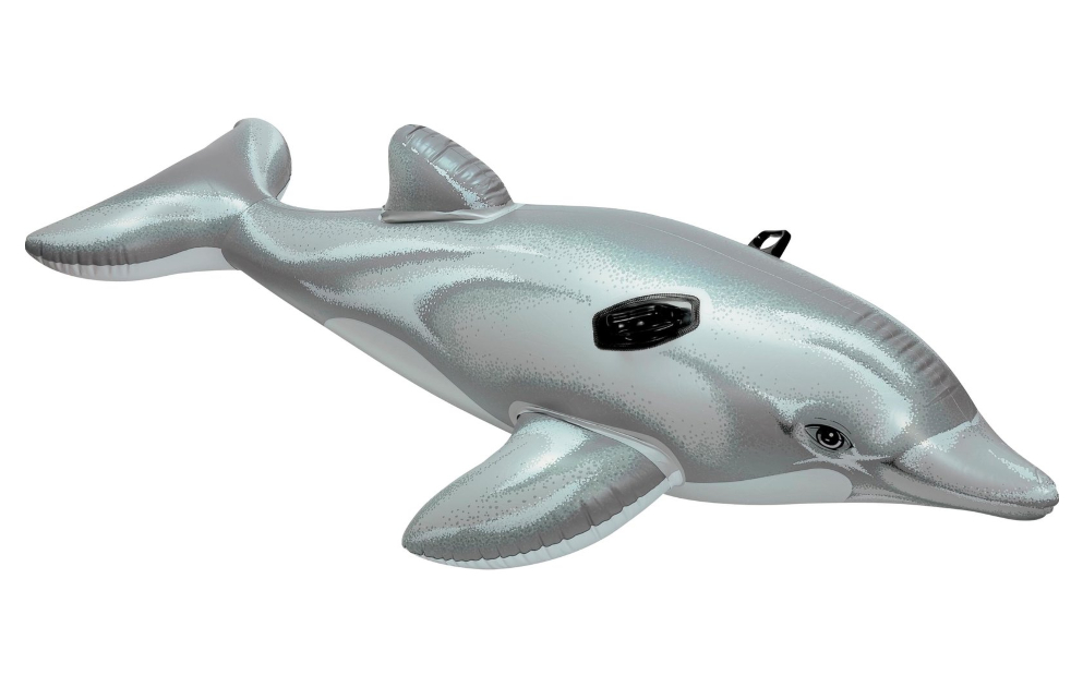Divovski dupin na napuhavanje u novom, vrlo realističnom dizajnu. S dvije praktične ručke za bolji zahvat. Uključujući komplet za popravak.