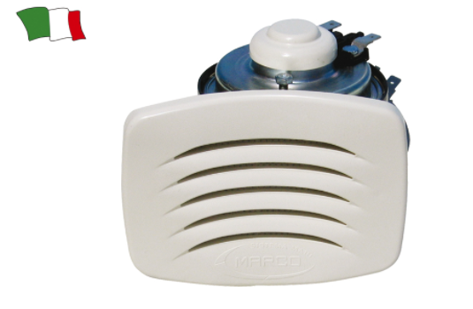 Unutar montirana elektromagnetska sirena s novim sustavom montaže kroz brzo prednje pozicioniranje. Tijelo od bijelog ASA, otporno na UV zračenje. Bijeli ili kromirani ASA roštilj sa sustavom za ukopčavanje. Prozračna zaštitna membrana. Horna s glasnim zvukom i morskim tonom.