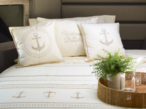 Lagani prekrivač za brod, savršen za ljeto ili proljeće. S nauticističkim dizajnom s motivom sidra.