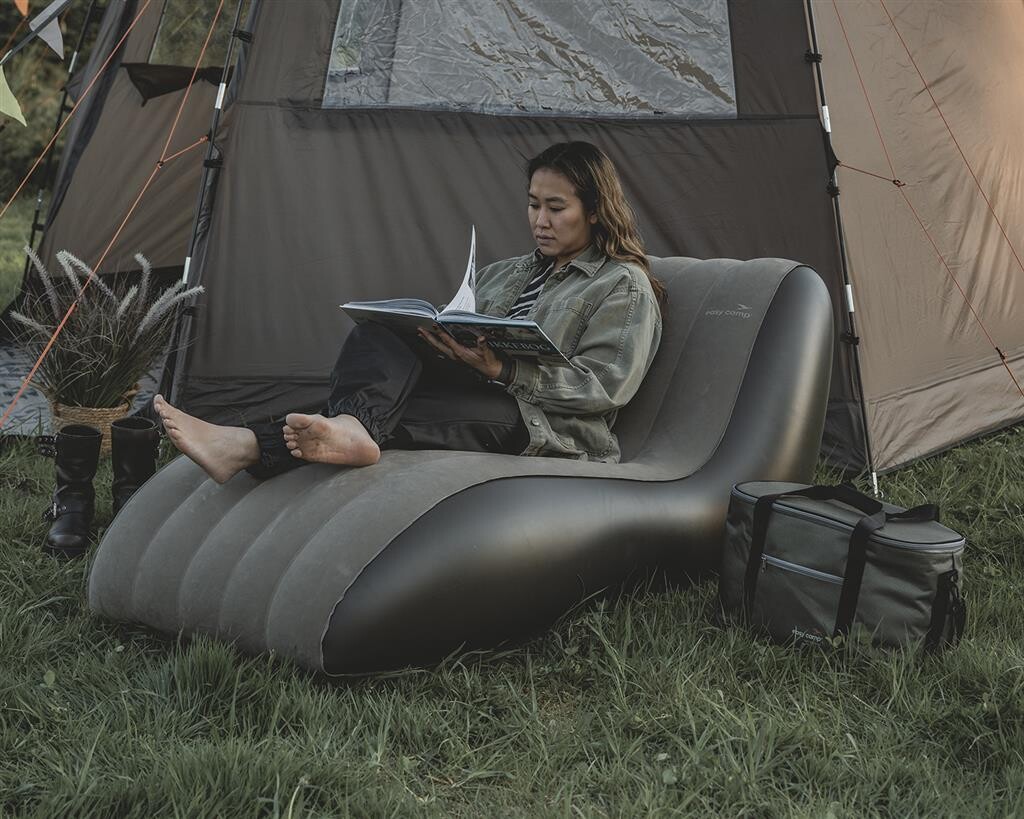 Teško je odoljeti primamljivoj udobnosti Easy Camp Comfy Lounger-a. S svojim primamljivim krivuljama i super mekim osjećajem, zove se da se uvučete na njega pod suncem. Drijemajte pod suncobranom, nadopunite svoju boju, ili jednostavno se opustite. Jednostavno i brzo se napuše.