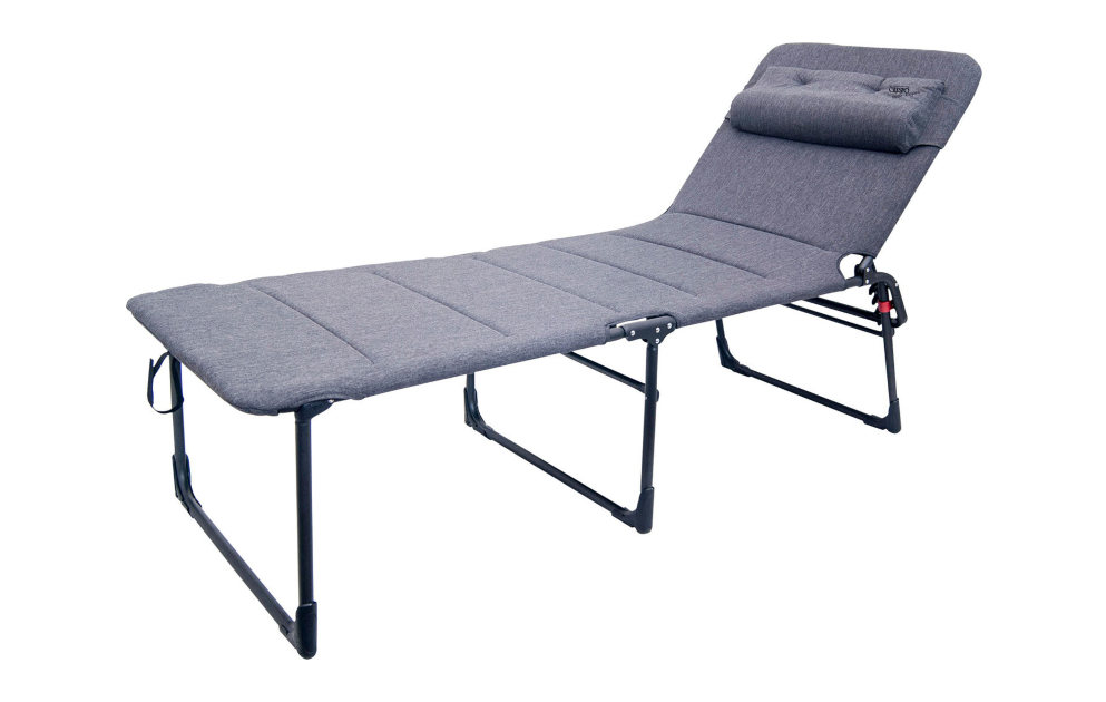 Ležaljka s tri noge Natur-Elegant izuzetno visoka i široka. Aluminijski okvir presvučen epoksidom i podstavljena vodoodbojna tkanina Natur-Elegant.