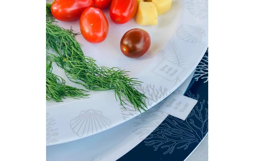 Posuđe tvrtke Marine Business izrađeno je od 100% melamina, vrlo je izdržljivo i pogodno za perilicu posuđa.