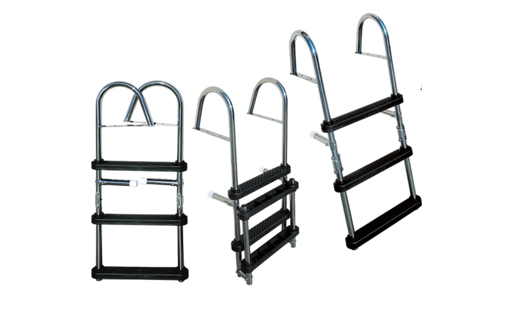Ljestve od nehrđajućeg čelika AISI 316 s rukohvatom koji se mogu ravno preklopiti radi manjeg tereta i plastičnih stepenica.