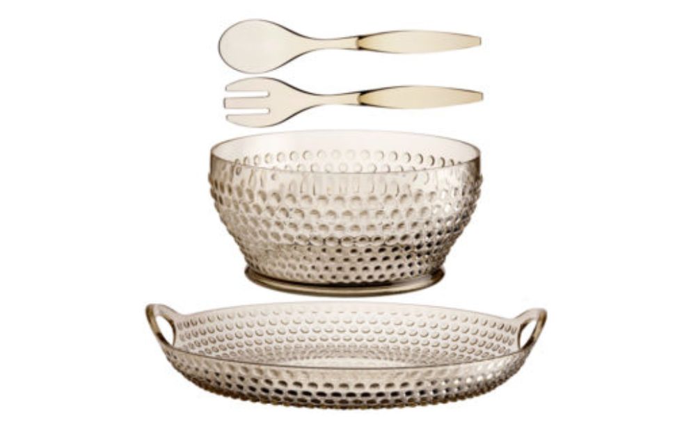 Zdjela za salatu s priborom za jelo i pladnjem od MS-a, gotovo nesalomljivog materijala idealnog za brod ili vrt.