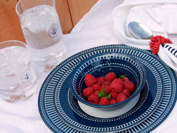 Izrađena je od nerazbijivog dvoslojnog melamina s vanjskim dijelom u tamnoplavoj boji, što je čini nautičkim, praktičnim i elegantnim artiklom.