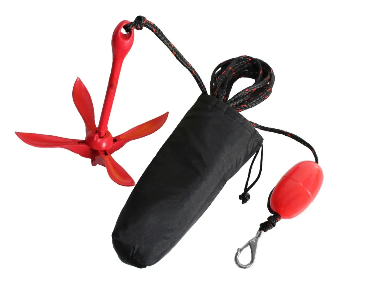 Ovaj praktični komplet uključuje sklopivo sidro, uže i karabiner, sve spremljeno u kompaktnu i izdržljivu navlaku. Zahvaljujući svom dizajnu, lako se prenosi i brzo koristi – bez komplicirane instalacije.