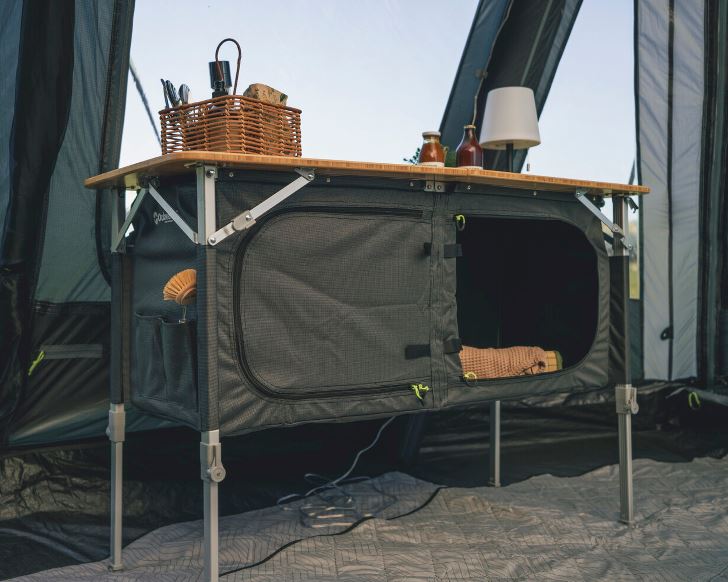Padres Double ormarić nudi veliku bambusovu površinu za rad, pružajući čvrst i prostran prostor za pripremu obroka. Dvostruka polica s patentnim zatvaračima i mrežnom ventilacijom pomaže u održavanju vaše opreme organiziranom i svježom, dok male džepove možete koristiti za pohranu manjih predmeta. Dizajniran za brzo postavljanje, otvara se i sklapa u nekoliko sekundi, što ga čini savršenim za upotrebu na putu. Priključena ručka osigurava lako nošenje kada je sklopljen, a uključena torba za nošenje omogućuje jednostavno skladištenje i prenošenje. Idealno za kampiranje, piknike ili vanjska okupljanja, ovaj ormarić pruža funkcionalnost i praktičnost gdje god se nalazili.