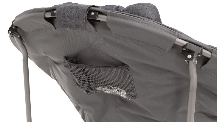 Potpomognut izdržljivim čeličnim okvirom presvučenim prahom visoke čvrstoće, svidjet će vam se udoban mjesečev stil sklopive stolice Outwell Kentucky Lake s debelim podstavljenim sjedalom i naslonom koji nudi dodatnu udobnost i izolaciju. Značajke uključuju mrežasti džep na naslonu stolice, odvojivi, podesivi naslon za glavu i torbu za nošenje.