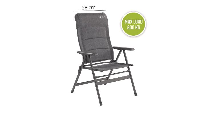 Iznimno široko podstavljeno sjedalo i naslon nudi stil s visokim naslonom u 7 položaja za optimalnu udobnost, s maksimalnim opterećenjem od 200 kg zahvaljujući maloj težini, visokoj čvrstoći, aluminijskom okviru obloženom prahom s ergonomskim rukama i integriranim, odvojivim jastukom za vrat