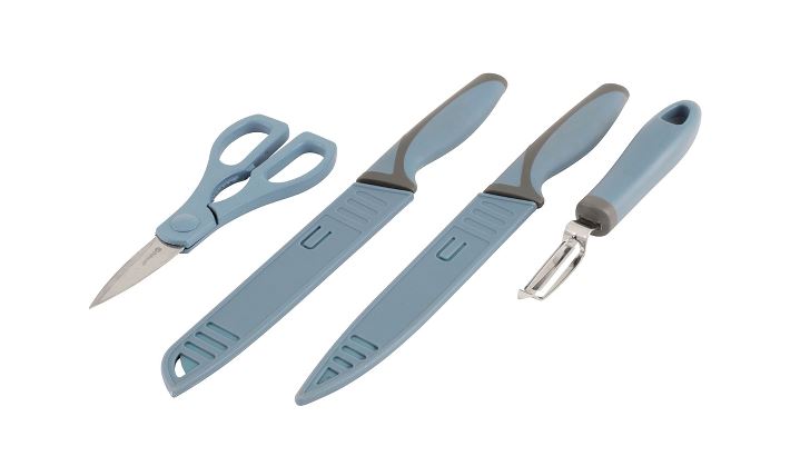 Veličina: Univerzalni nož 20 cm, nož za kruh 19,5 cm, gulilica 8 cm, škare 7 cm