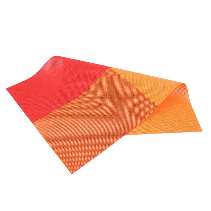PODMETAČ ZA STOL od 2 boje, narančasto / crvena boja: Šarene kulture stola za kampiranje, kamp prikolice, kućice za odmor, popločane vrtove ili vrtove. 2 komada u setu. Higijensko i lako se ispire.Dimenzije: 30 x 45 cm.