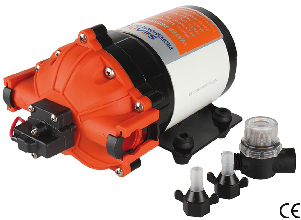 Diaphragm autoclave s automatskom regulacijom protoka i tlaka. Samousisna vodena tlačna pumpa s automatskom regulacijom protoka i tlaka, smanjujući potrošnju. Zahvaljujući prisutnosti zaobilaznog ventila, pulsirajući učinak je minimaliziran, a pumpa je puno tiša. Vodena tlačna pumpa ima gumeni podložak protiv korozije i buke te termalnu zaštitu na motoru koja ga zaustavlja u slučaju slučajnog pregrijavanja i može raditi suho bez prijavljivanja bilo kakve štete. Membrane su napravljene od Santoprene-a i osiguravaju tih i konstantan protok. Dolazi s filterom i spojnicama za crijeva. Autoklavske pumpe nisu pogodne za spremnike za živežne organizme i slanu vodu. Testirano u skladu s EU CE i RoHS propisima.