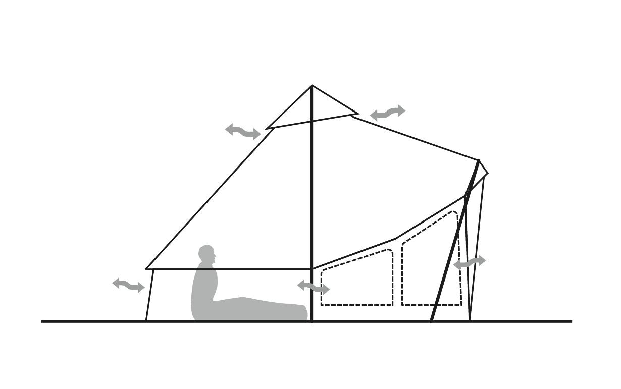 • Pod se odvezuje do središta i preklopi za sigurnu uporabu peći u šatoru ili za stvaranje mokrog područja