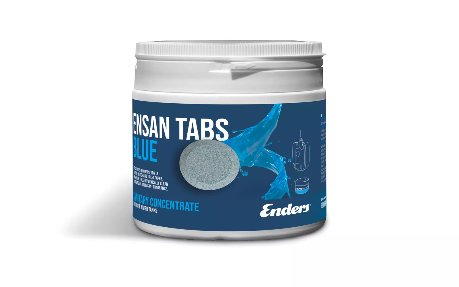 Enders Ensan Tabs Blue za spremnik otpadne vode su sanitarni koncentrat u obliku tableta. Omogućuju jednostavno i precizno doziranje. Koncentrat čisti spremnik i daje ugodan miris s visokokvalitetnim eteričnim uljima. 15 komada u oakiranju.