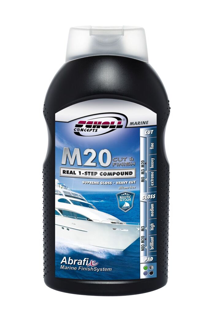 M20 Cut & Finish je doista svestrani čarobnjak. U samo jednom koraku, ovaj proizvod uklanja snažne tragove habanja na gelcoat površinama i ostavlja savršeni sjaj poput ogledala. Zahvaljujući izvrsnoj sposobnosti pružanja hologramske pločice i okretanja, M20 Cut & Finish je također idealan za revitalizaciju tamnih gelcoata. Ovaj vrhunski proizvod sigurno će zadovoljiti vaša očekivanja a koristeći ispravan jastučić za sjaj, uvijek ćete postići izvrsnu sjajnu površinu u samo jednom koraku.