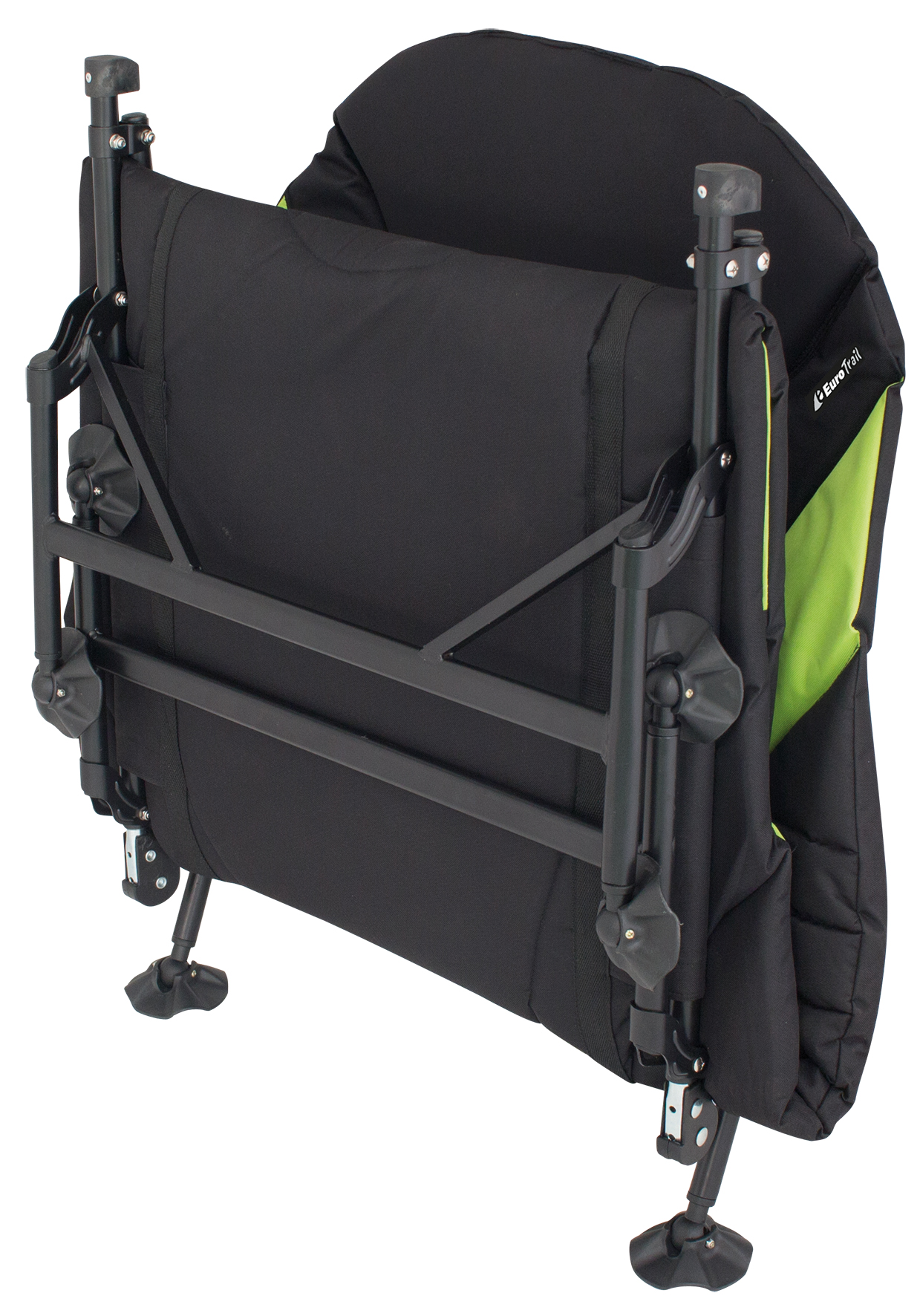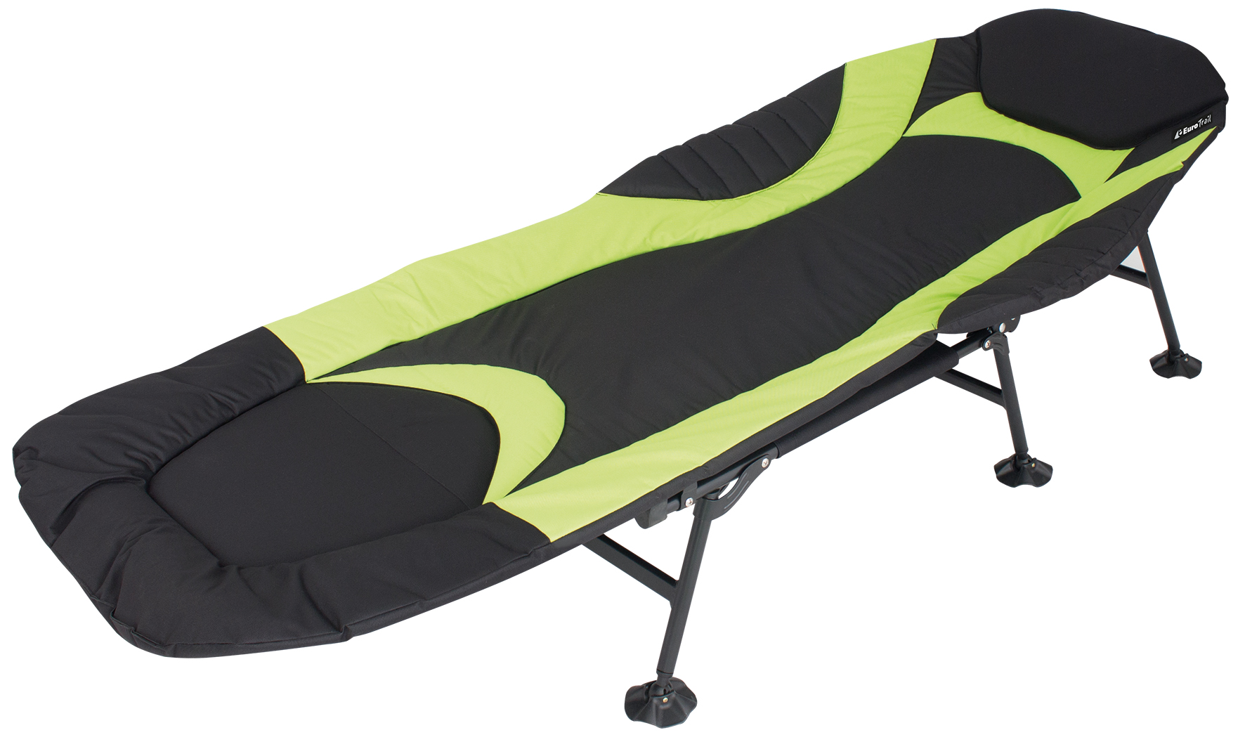 Udobana ležaljka za kampiranje s čeličnim okvirom i mekanim podstavljenim gornjištem od poliestera.
