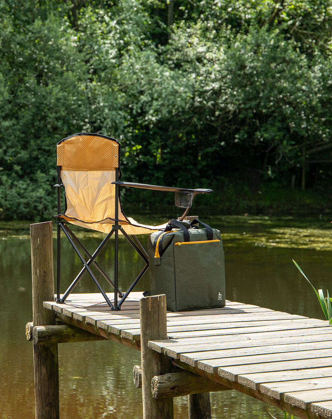 Bo-Camp moderne i trendy lagane sklopive stolice s industrijskim izgledom. Ova sklopiva stolica ima udobne naslone za ruke s posebnim držačem za piće. Vrlo kompaktna kad je sklopljena, a priložena torba za nošenje olakšava prijenos. Stolica ima čelični okvir s sjedištem od najlona (600 denira) s izgledom karbona.