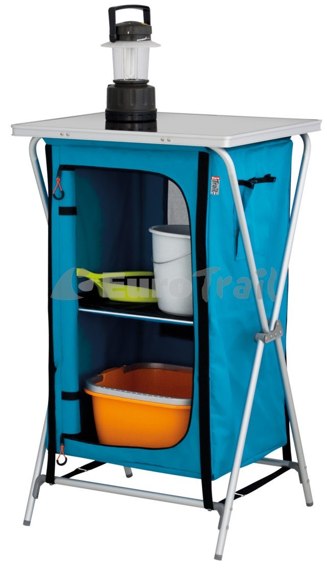 Poseban okvir za savijanje olakšava postavljanje ormara u samo nekoliko sekundi. Podesive nožice. Police su opremljene aluminijskim rubom tako da se ne spuštaju. Cozumel se isporučuje uklj. gornju dasku i praktičnu torbu za pohranu.