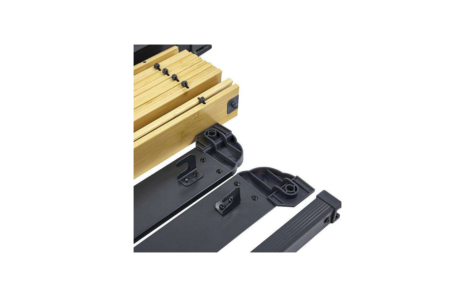 Trendi stol iz kolekcije Urban Outdoor. Vrlo čvrst i s vrlo elegantnom i vodootpornom pločom od bambusa. Zahvaljujući sklopivom okviru stola, koji je izrađen iz jednog dijela, njegovo postavljanje gotovo da nije problem. Kada je okvir potpuno rasklopljen, letvica se može lako pričvrstiti.