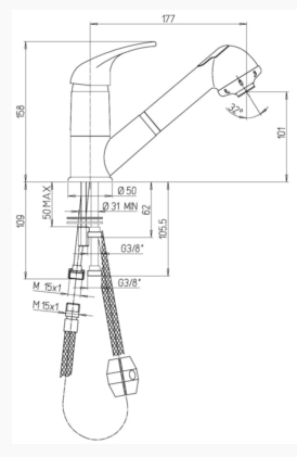 Dolazi s 2 metalna fleksibilna crijeva od 35 cm i vijčanim priključcima.