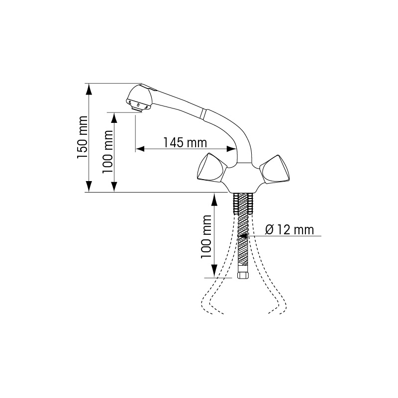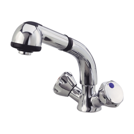 Slavina slavina može se koristiti kao tuš ili slavina. Dolazi s metalnim hidrauličkim crijevom od 2 x 20 cm i vijčanim priključcima. S duljinom cijevi od 1500 mm. fleksibilni 3/8″