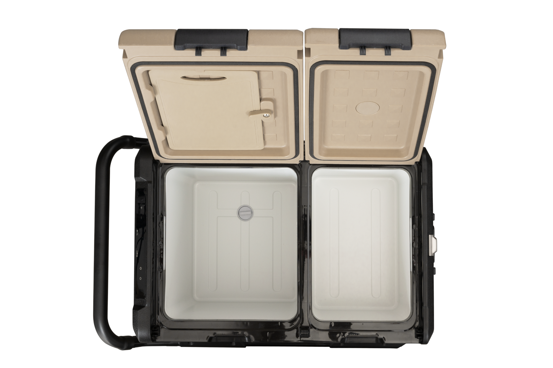 S prostranim kapacitetom od 45 litara podijeljenim u dva odvojena odjeljka, imate dovoljno prostora za svu hranu i piće. Dva odvojena poklopca omogućuju učinkovit pristup odjeljcima, a možete prilagoditi smjer otvaranja prema želji. Hladnjak je također opremljen ugrađenom LED rasvjetom, čepovima za odvod, daskom za rezanje i otvaračem za boce, a odjeljci sadrže košare za pohranu.