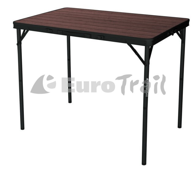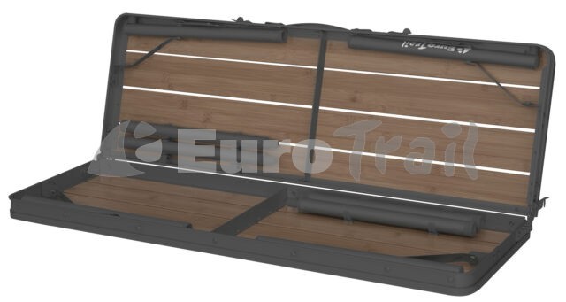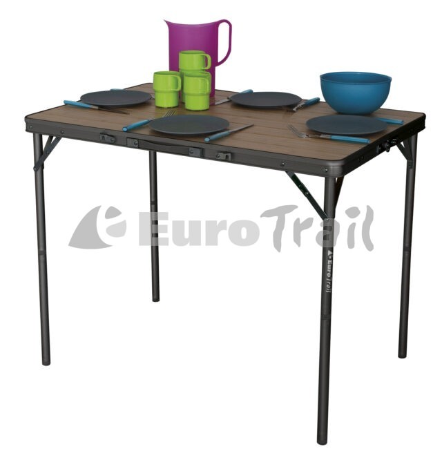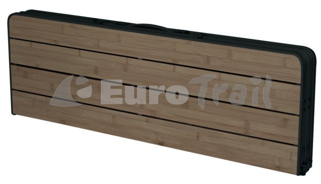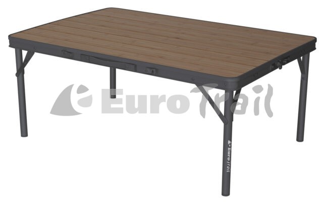 Veliki aluminijski stol s vodootpornom pločom od bambusa. Čvrst i stabilan aluminijski okvir podesiv u 2 različite visine. Podesive noge. Stol se može preklopiti na pola, stvarajući mali paket. Stol je pogodan za 4 do 6 osoba.
