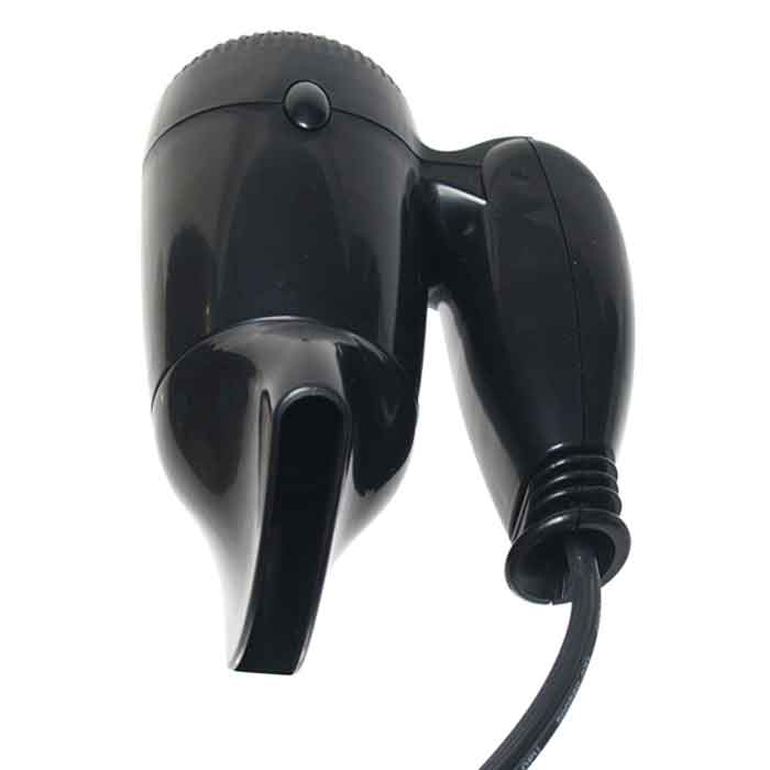 Praktično putno sušilo za kosu 12V, sa 150 W snage i dvostupanjskim prekidačem: stupanj I = hladan zrak / stupanj II = vrući zrak.